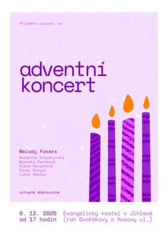 Zveme vás do jihlavskéhb kostela v sobotu 6. prosince v 17.30 na adventní koncert v podání Melody fakers. Vstupné dobrovolné.